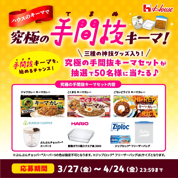 ご応募いただきましたお客さまの個人情報(氏名、郵便番号、住所、メールアドレス)は、当社にて厳重に管理し、本キャンペーンの抽選、賞品発送及び本キャンペーンに関する諸連絡の目的に限り使用いたします。お客様の個人情報の取り扱いについて、個人情報の保護に関する法令等を遵守するとともに、ハウス食品グループ共通のプライバシーポリシー(https://housefoods-group.com/privacy/index.html)に基づき、適切な管理を実施してまいります。